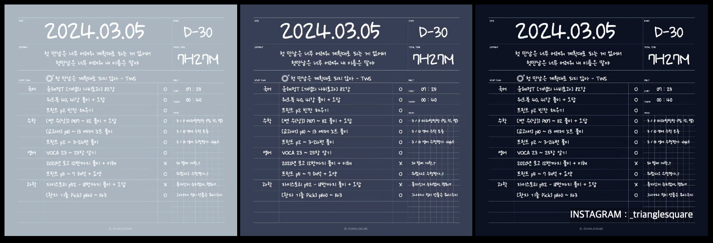 여러분들의 필기, 다꾸 등 프로 굿노트 템플릿 생활을 trianglesquare에게 뽐내주세요🫶