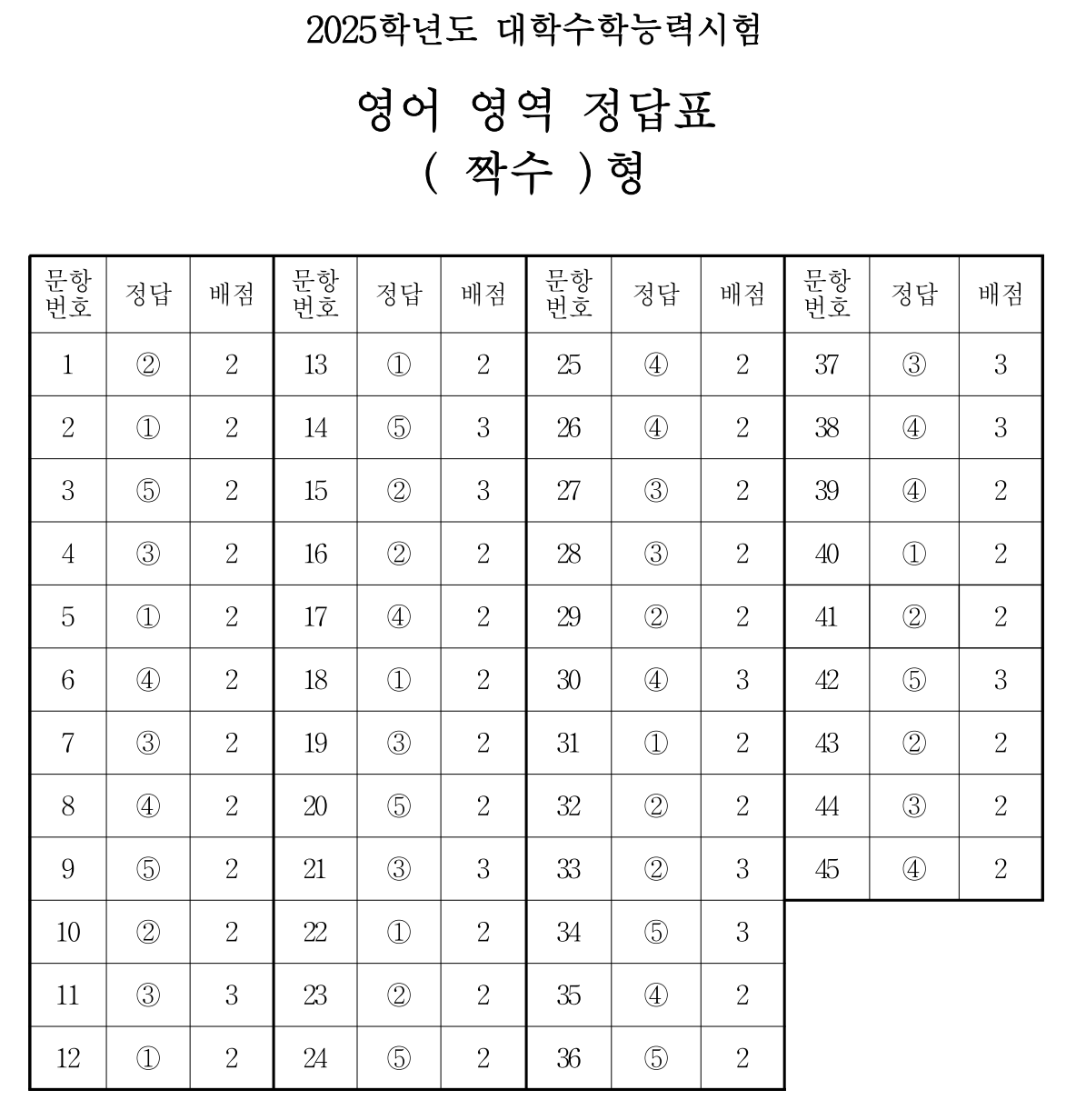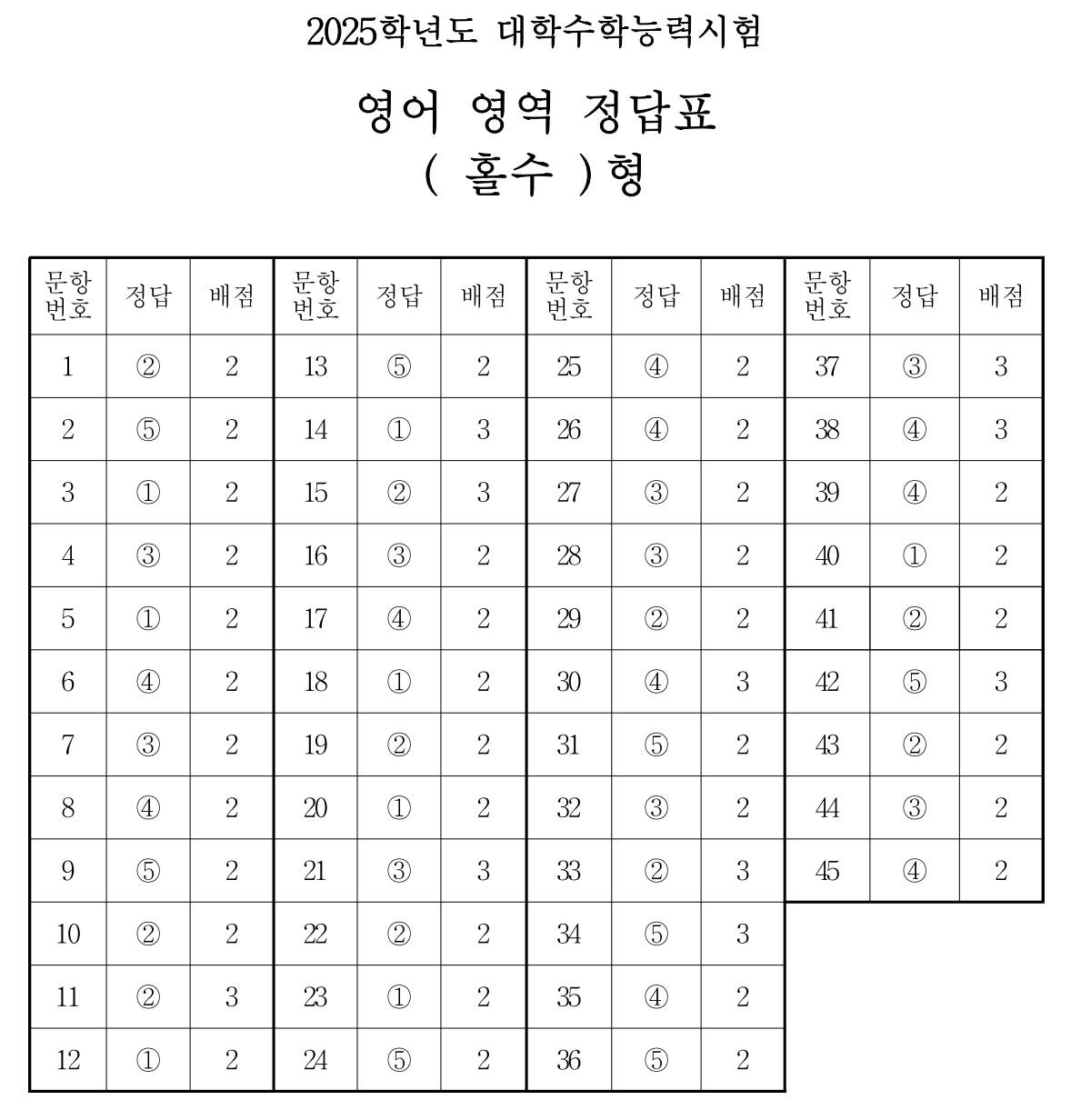 <2025학년도 수능 영어영역 정답 다운로드>